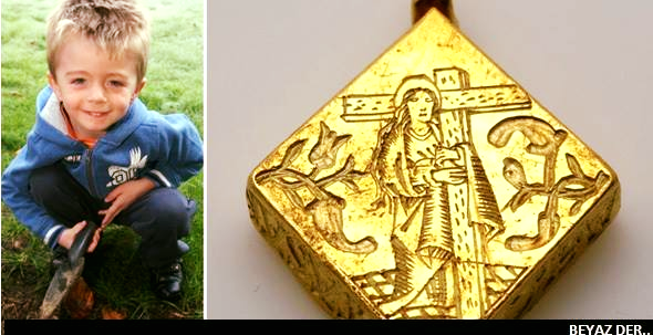 3 yaşındaki İngiliz James Hyatt, hayatında ilk defa eline aldığı metal detektörüyle 16.Yüzyıl’a ait 2.5 milyon sterlin değerinde olduğu tahmin edilen defineyi buldu.
